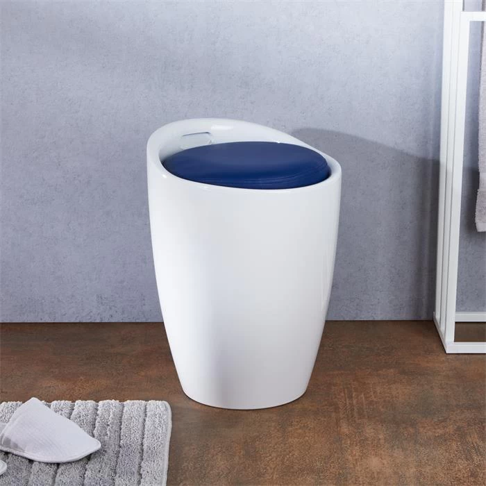 Badhocker DANIEL Mit Stauraum Weiß/blau