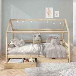 Bett Mit Stauraum ANDREA 90 X200 Cm Aus Kiefer In Weiss/natur