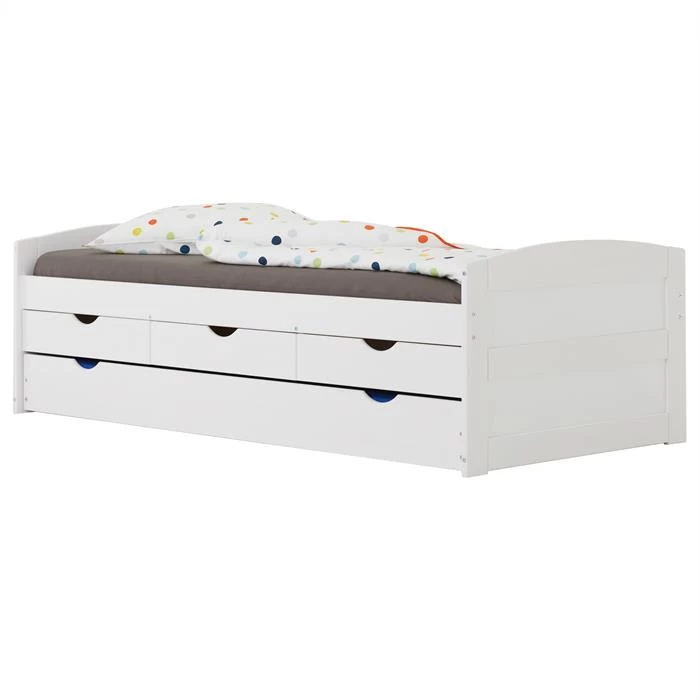 Bett Mit Stauraum JESSY 90×200 Cm, Mit Ausziehbett In Weiß