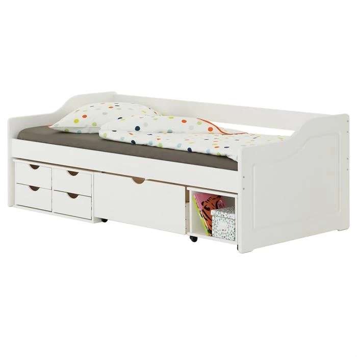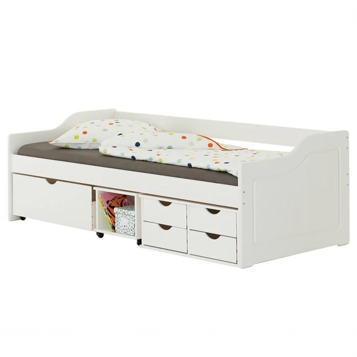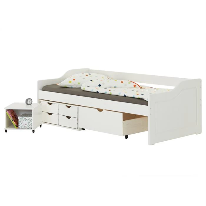 Bett Mit Stauraum SENTA 90×200 Cm, Kiefer Massiv In Weiß