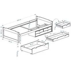 Bett Mit Stauraum ANDREA 90 X200 Cm Aus Kiefer In Weiss/natur