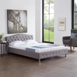 Polsterbett COLUMBUS 140×200 Cm, LED Beleuchtung, Kunstleder Grau