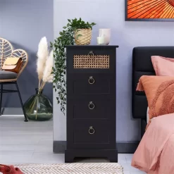 Nachttisch VANIKA Mit 4 Schubladen Und Wiener Geflecht, Schwarz