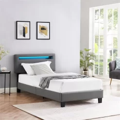 Polsterbett BENITO 90×200 Cm, LED Beleuchtung, Kunstleder Grau