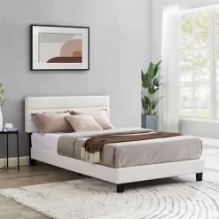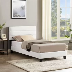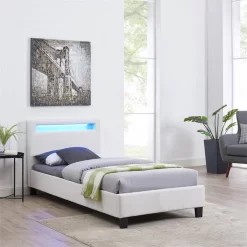 Polsterbett JERRY 140×200 Cm, LED Beleuchtung, Kunstleder Weiß