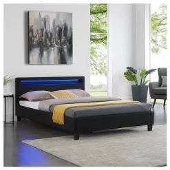 Polsterbett JORDIE 140×200 Cm, LED Beleuchtung, Stoff Schwarz