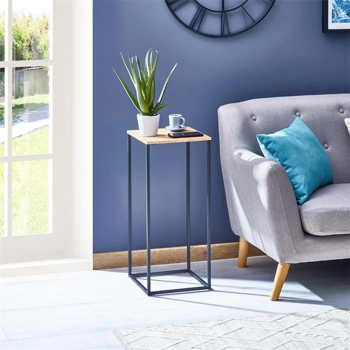 Blumenständer FLORA Aus Metall Tischplatte In Wildeiche