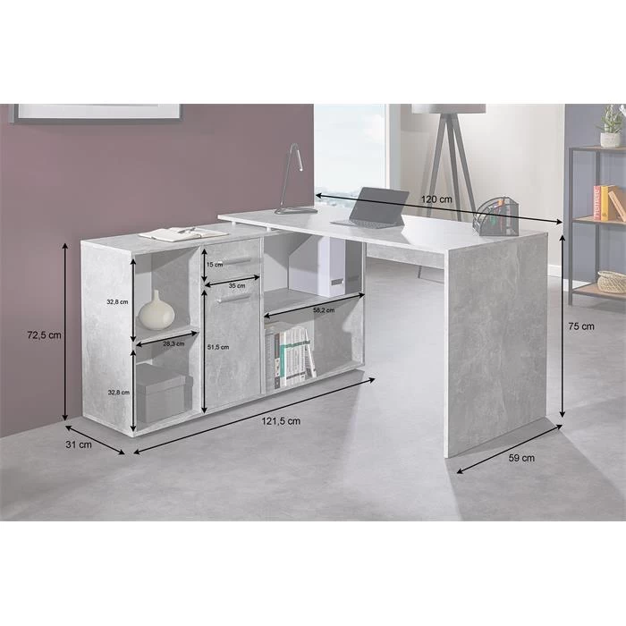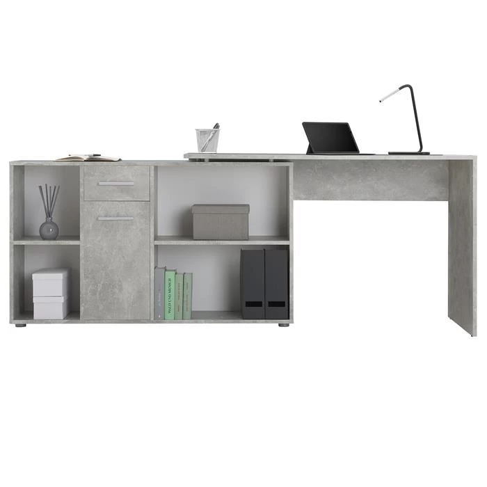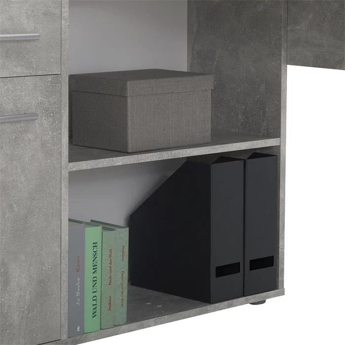 Eckschreibtisch CARMEN Mit Regalteil, Betonoptik