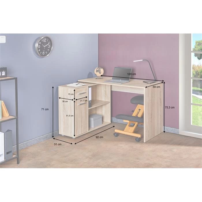 Eckschreibtisch ISOTTA Mit Regal In Sonoma Eiche