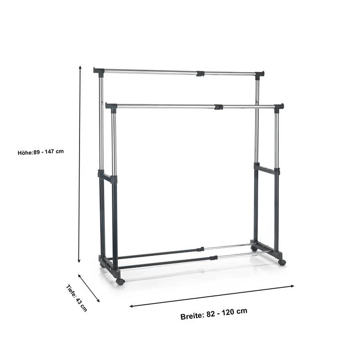Garderobenwagen CASA In Schwarz, 2 Kleiderstangen