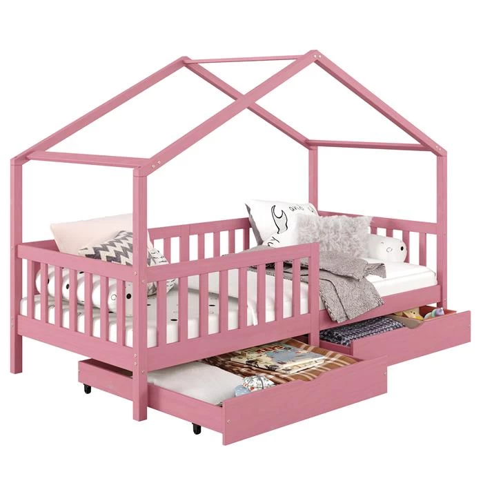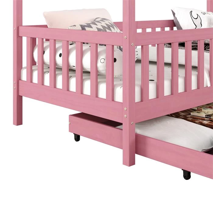 Hausbett ELEA In 90 X 200 Cm Aus Massiver Kiefer Mit Schubladen In Rosa