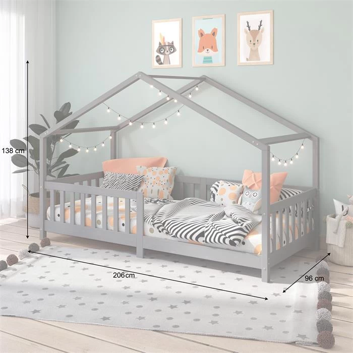 Hausbett LISAN In 90 X 200 Aus Massiver Kiefer In Grau