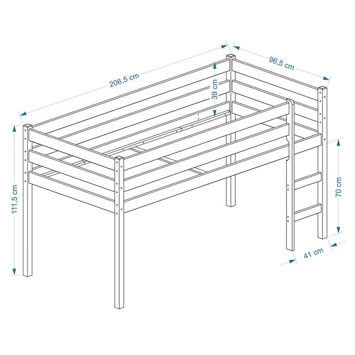 - Aufbaumaße Hochbett: 96,5 x 111,5 x 206,5 cm (B x H x L)