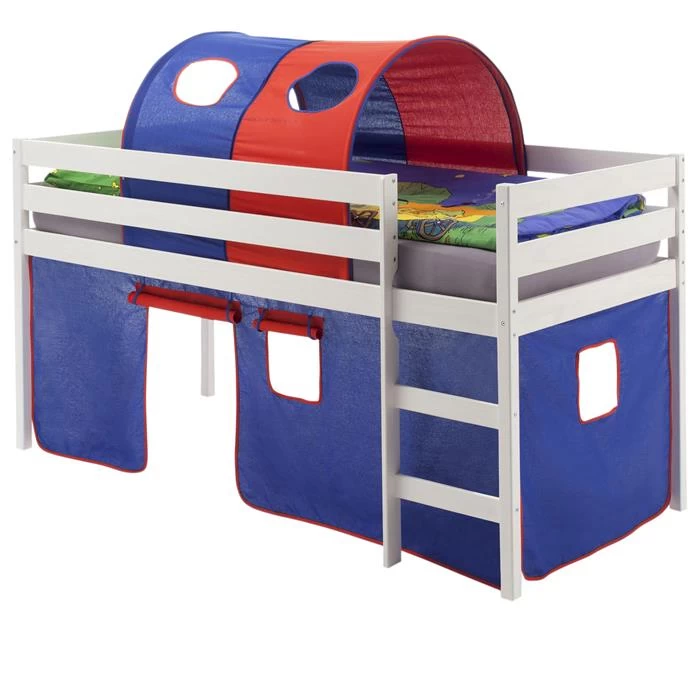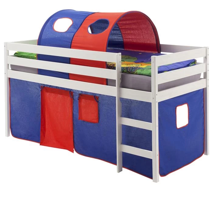Hochbett ERIK Vorhang & Tunnel Blau/rot