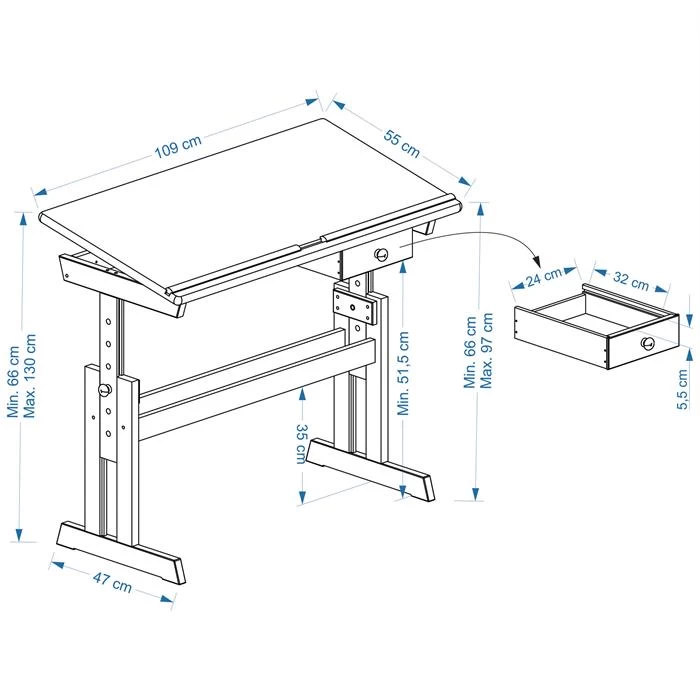 Kinderschreibtisch FLEXI Höhenverstellbar In Weiß/blau