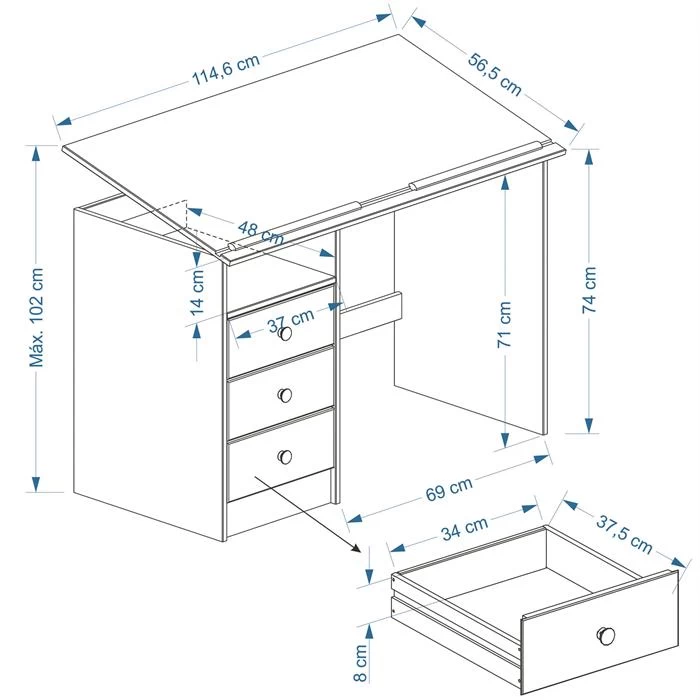 Kinderschreibtisch KEVIN Neigungsverstellbar Natur