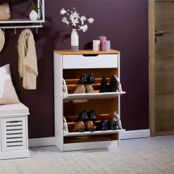 Schuhkipper BASIL Mit 2 Kipper Und 1 Schublade In Weiß, Kiefer Massiv