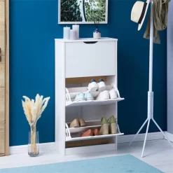 Schuhschrank BASIL Mit 3 Kipper In Weiß/braun, Kiefer Massiv