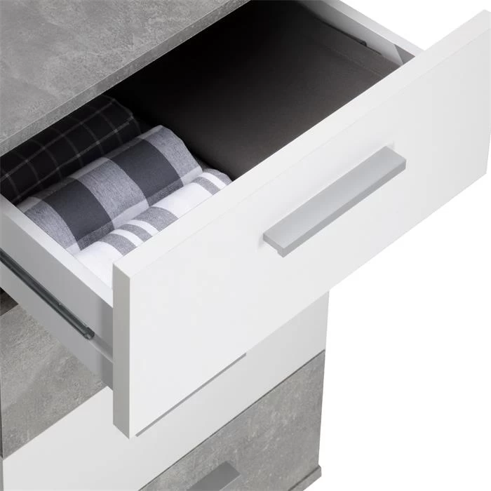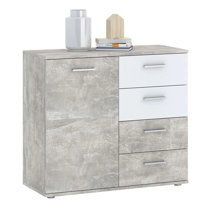 Kommode CHICAGO Betonoptik/weiß, 4 Schubladen, 1 Tür