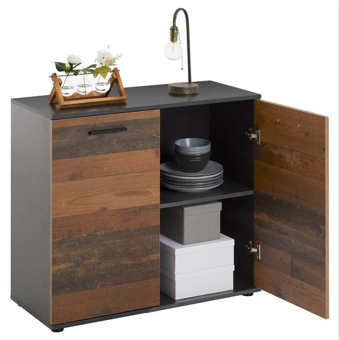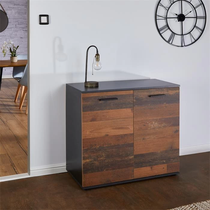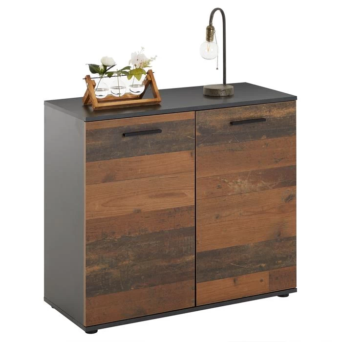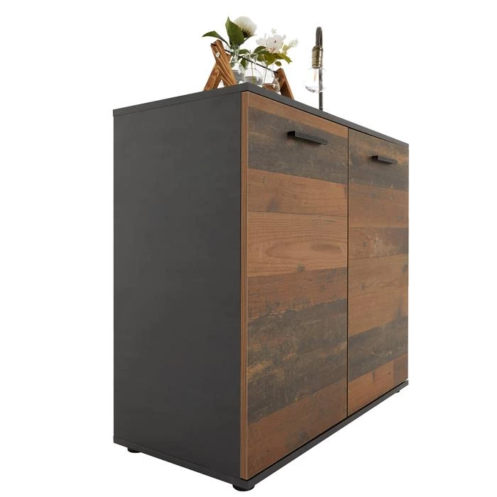 Kommode CHICAGO Mit 2 Türen In Beton Dunkel/Old Style