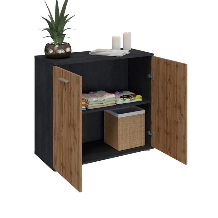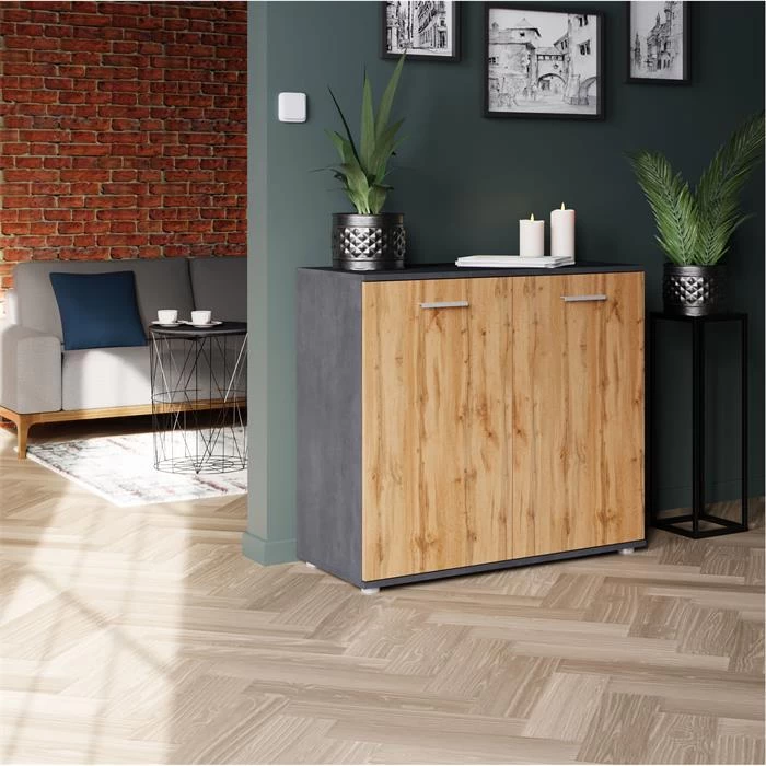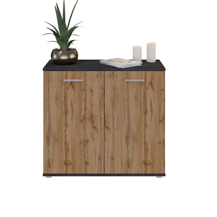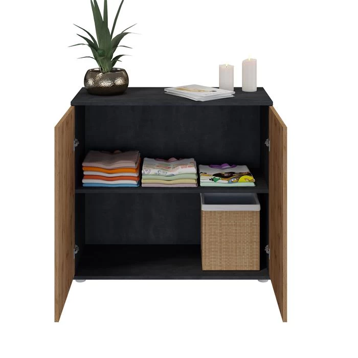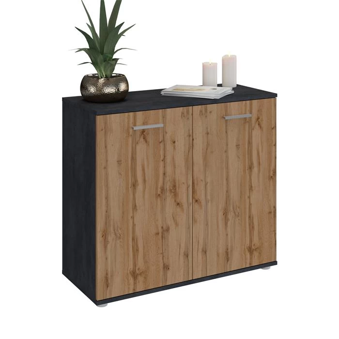 Kommode CHICAGO Mit 2 Türen In Beton Dunkel/Wotan Eiche
