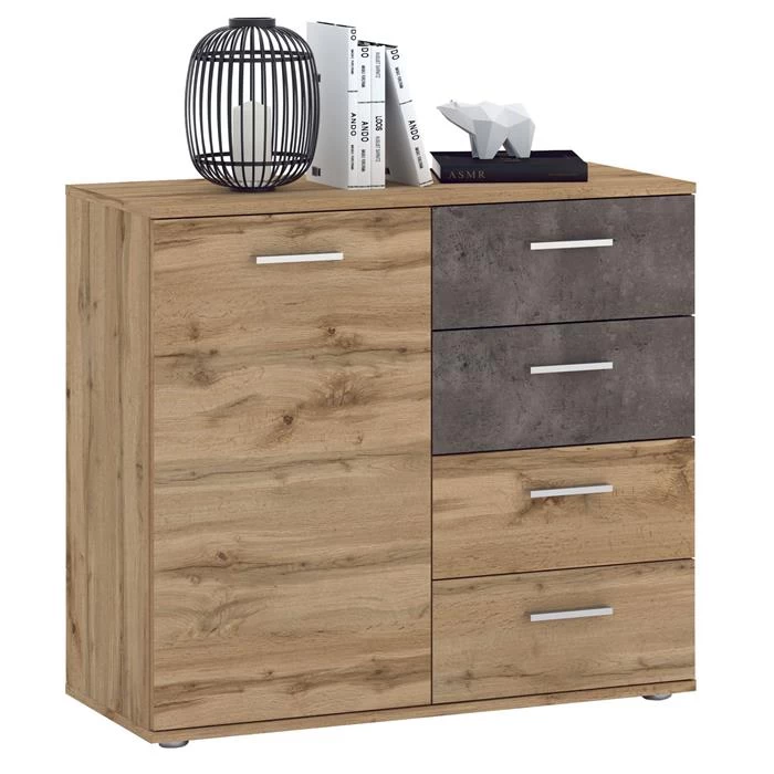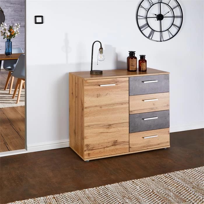 Kommode CHICAGO Wotan Eiche/Beton Dunkel, 4 Schubladen, 1 Tür