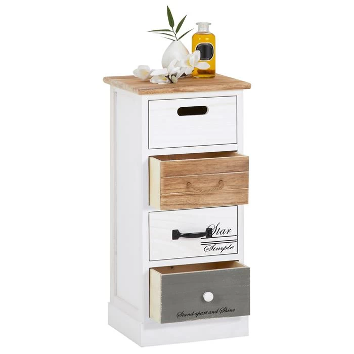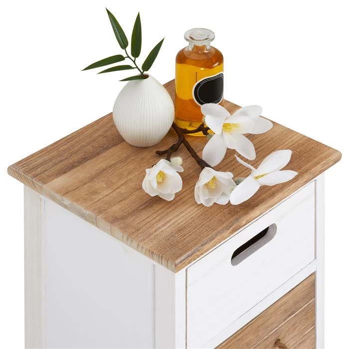 Schubladenkommode FLOWER, Paulownia-Holz Weiß/braun, Mit 1 Schublade Und 3 Körben