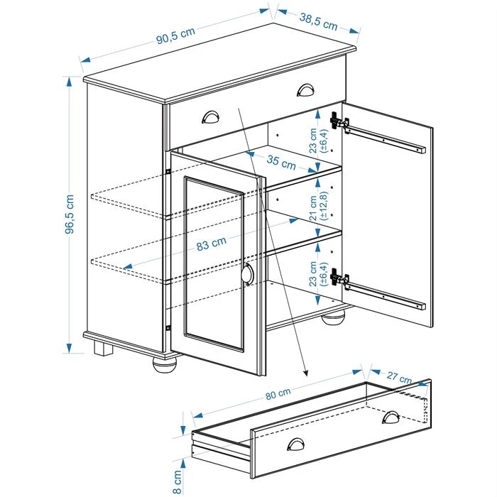 - Aufbaumaße: 90 x 97 x 39 cm (B x H x T)
