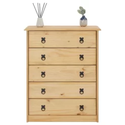 Mexico Sideboard RURAL Kiefer Massiv Mit 5 Schubladen Und 2 Türen In Weiß
