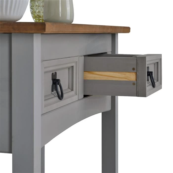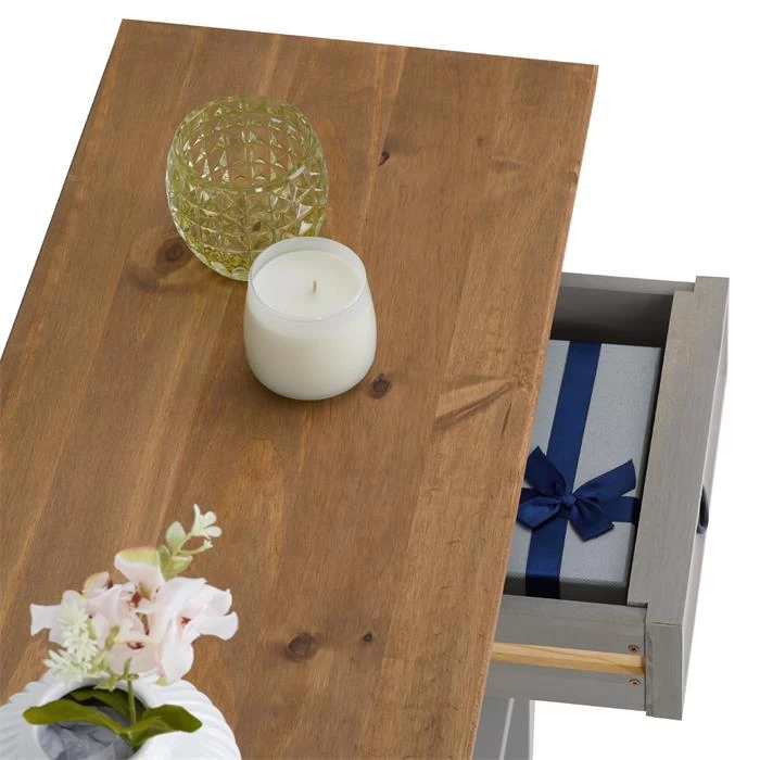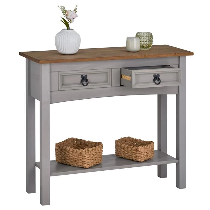 Konsolentisch RAMON Kiefer Massiv Mit 2 Schubladen, Grau/braun