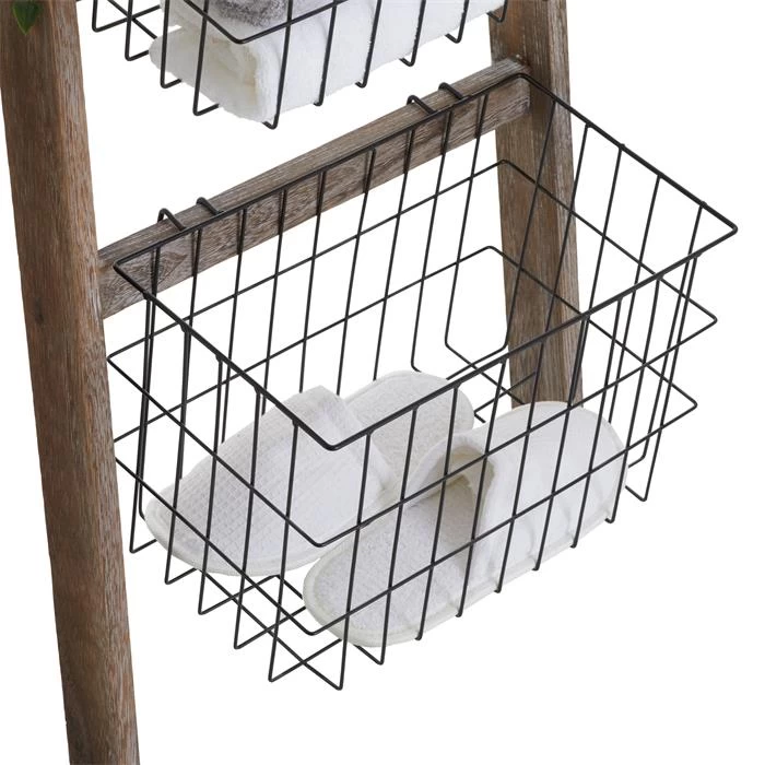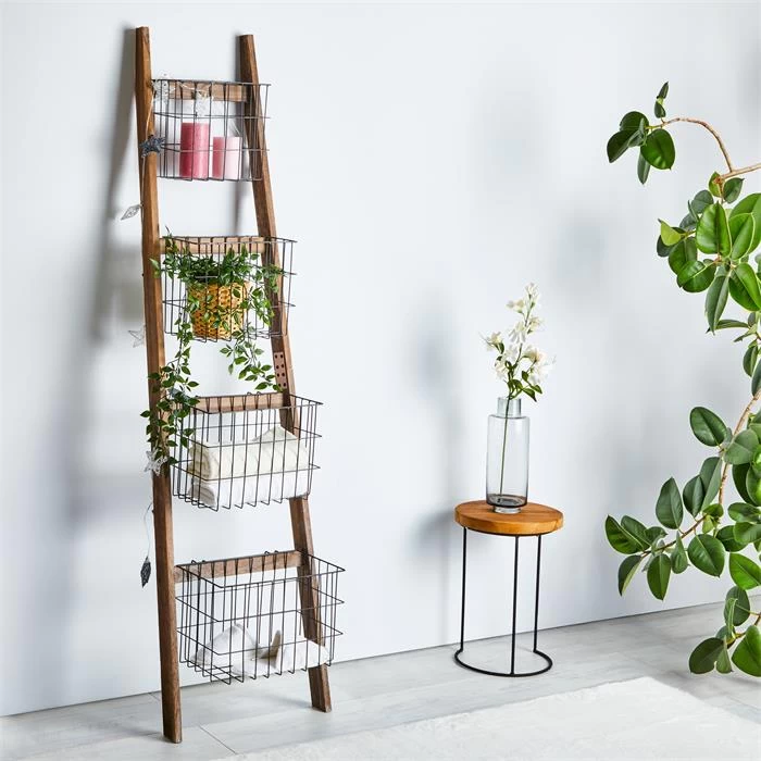 Leiterregal FLORISTA In Dunkelbraun Mit 4 Metallkörben