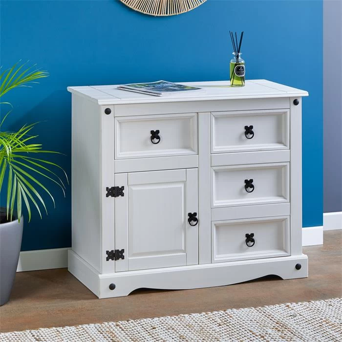 Mexico Kommode RURAL Aus Kiefer Massiv Mit 4 Schubladen In Weiß