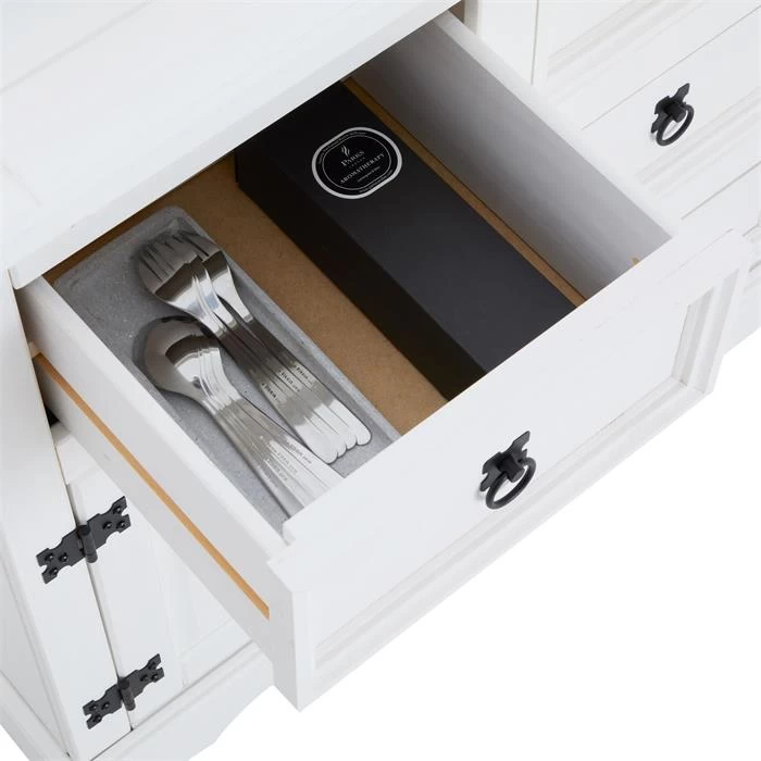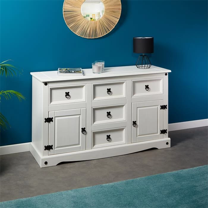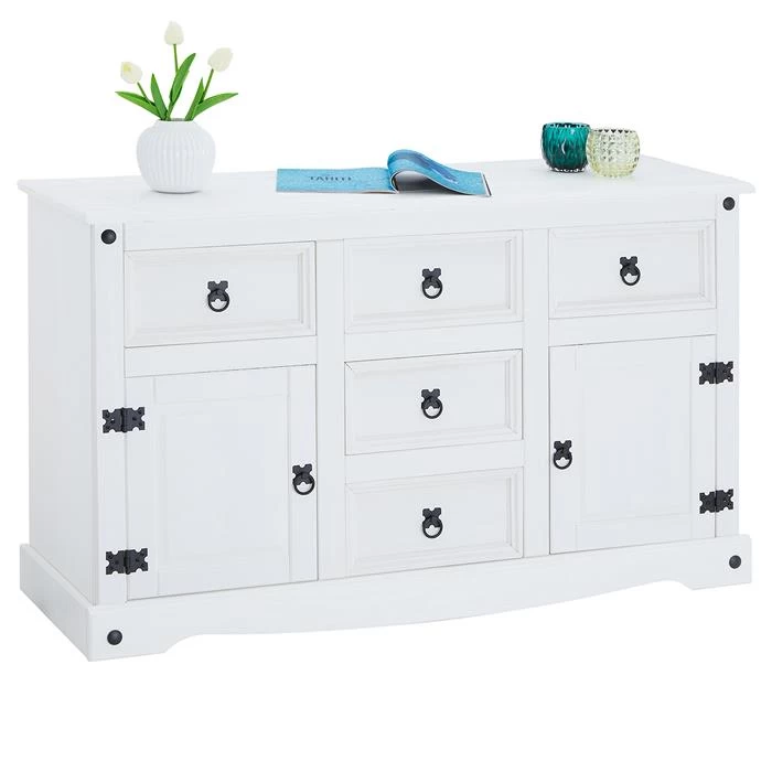 Mexico Sideboard RURAL Kiefer Massiv Mit 5 Schubladen Und 2 Türen In Weiß