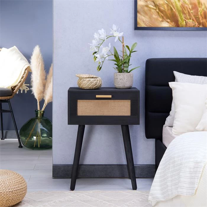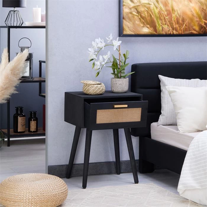 Nachttisch KIRAN Mit 1 Schublade, Holz In Schwarz