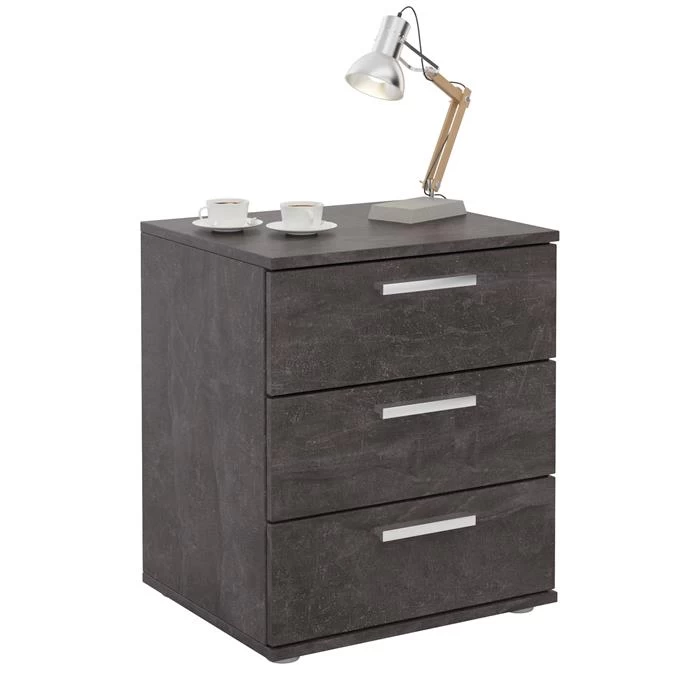 Nachttisch MARIELLA In Beton Dunkel Mit 3 Schubladen