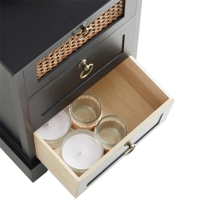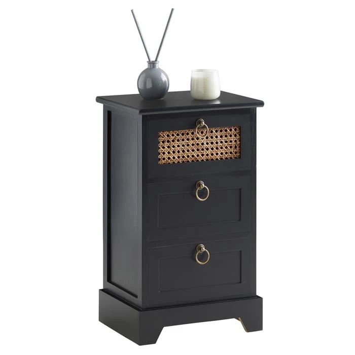 Nachttisch RAJA Mit 3 Schubladen Und Wiener Geflecht, Schwarz