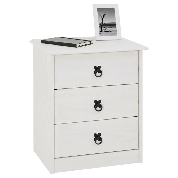 Nachttisch RESIDENCIA, Kiefer Massiv Weiß, Mit 3 Schubladen