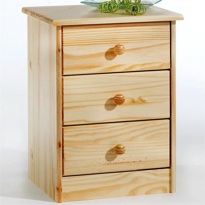 Nachttisch RONDO Mit 3 Schubladen, Kiefer In Natur