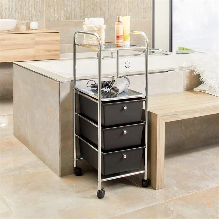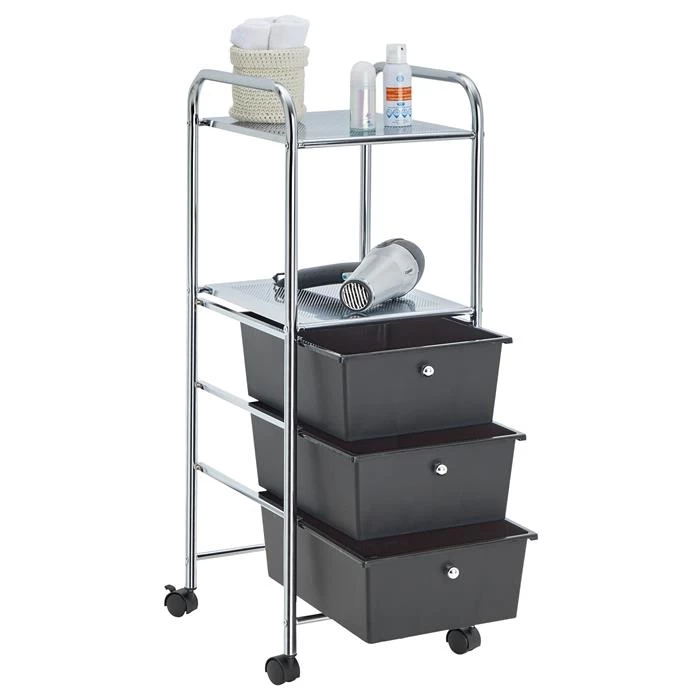 Rollcontainer GINA, 3 Schubladen & 2 Böden In Schwarz