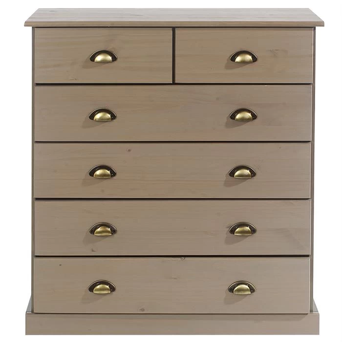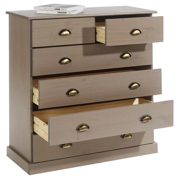 Schubladenschrank PARIS Aus Massiver Kiefer In Taupe Mit 6 Schubladen
