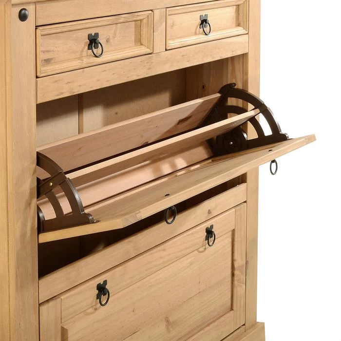 Schuhschrank TEQUILA, Kiefer Massiv, 2 Klappen Und Schubladen, Mexiko