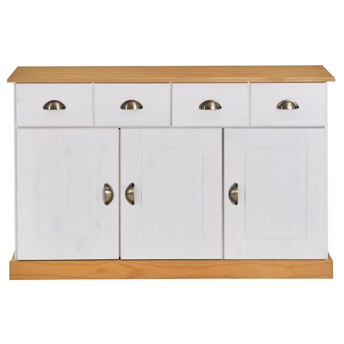 Sideboard PARIS Aus Massiver Kiefer In Weiß/braun Mit 2 Schubladen Und 3 Türen