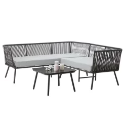 Gartenmöbel Set JAKARTA Mit Seilbespannung Und Polster In Grau