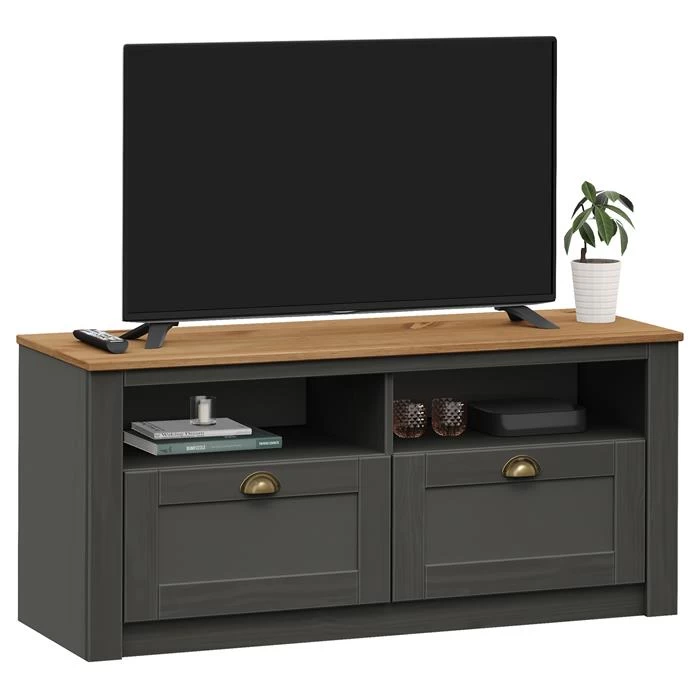 TV Lowboard BOLTON Mit 2 Schubladen, Kiefer In Anthrazit/braun