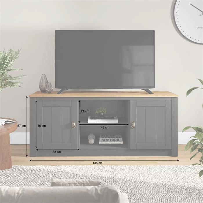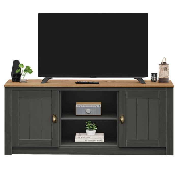 TV Lowboard BOLTON Mit 2 Türen, Kiefer In Anthrazit/braun