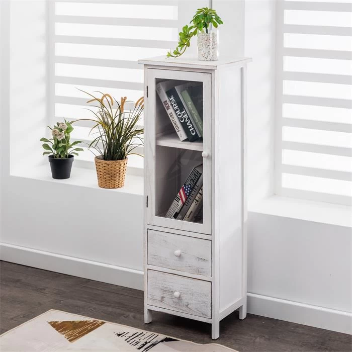 Vitrine ETANIA Weiß Mit 2 Schubladen Im Vintage Look